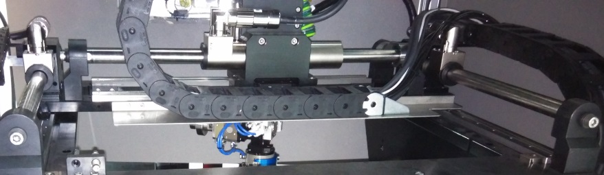 利用直线电机搭建门式坐标机器手,配合机器视觉完成插针的拾取、旋转、压针、插针等装配。